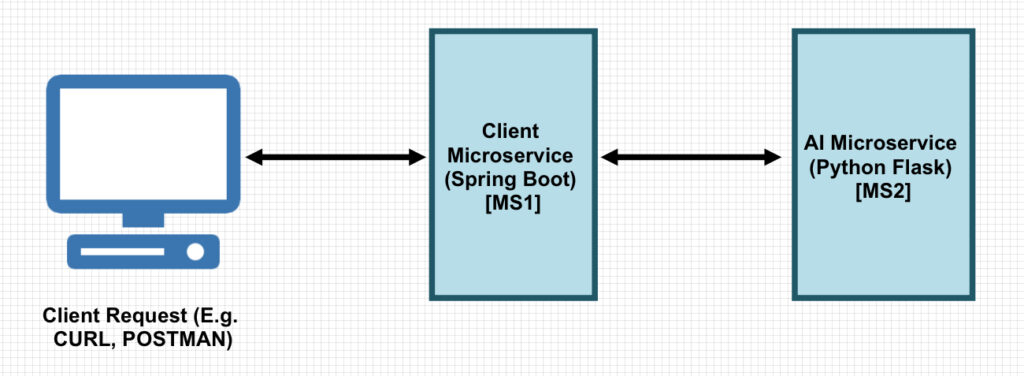 Spring Boot Client Service – Next step involves developing a Spring Boot AI Client Microservice that will interact with the AI microservice. The service establishes a REST API communication protocol to effectively exchange data with the AI microservice.